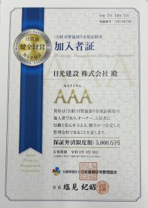 日管協預り金保証制度」において、最高の信用格付である「AAA(トリプルエー)を取得し、